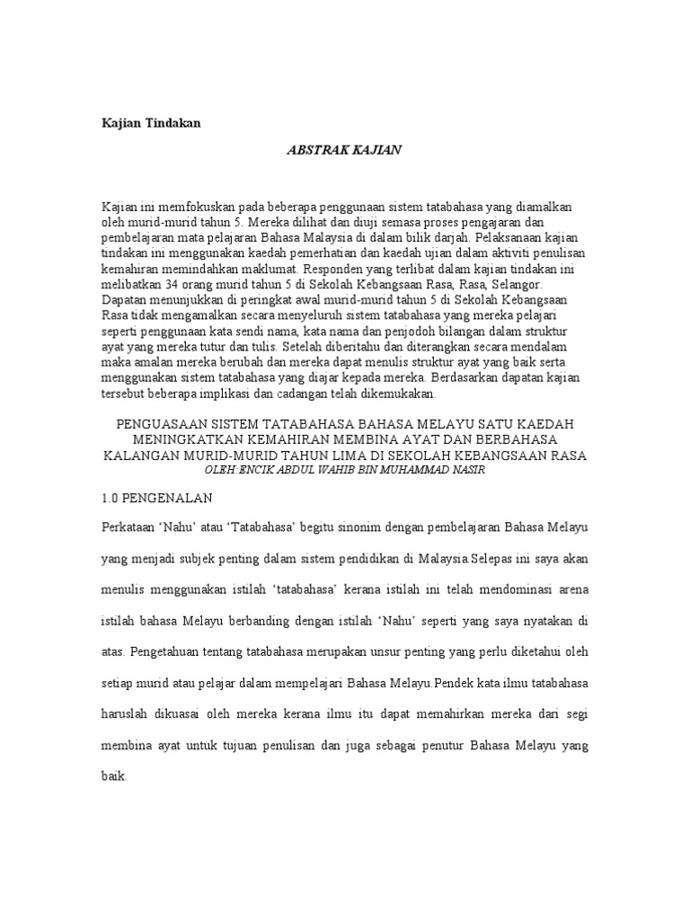 Contoh dokumen yang dianalisis ialah. Tulisan jawi juga terpinggir selepas kerajaan memutuskan bahawa tulisan rumi digunakan sebagai medium bagi penyampaian bahasa melayu dan pada satu ketika pendidikan islam juga. Contoh kajian tindakan bahasa melayu. Inilah kalau menulis mengikut sedap mulut aje. Learn vocabulary, terms and more with flashcards, games and tujuan kajian tindakan ialah.