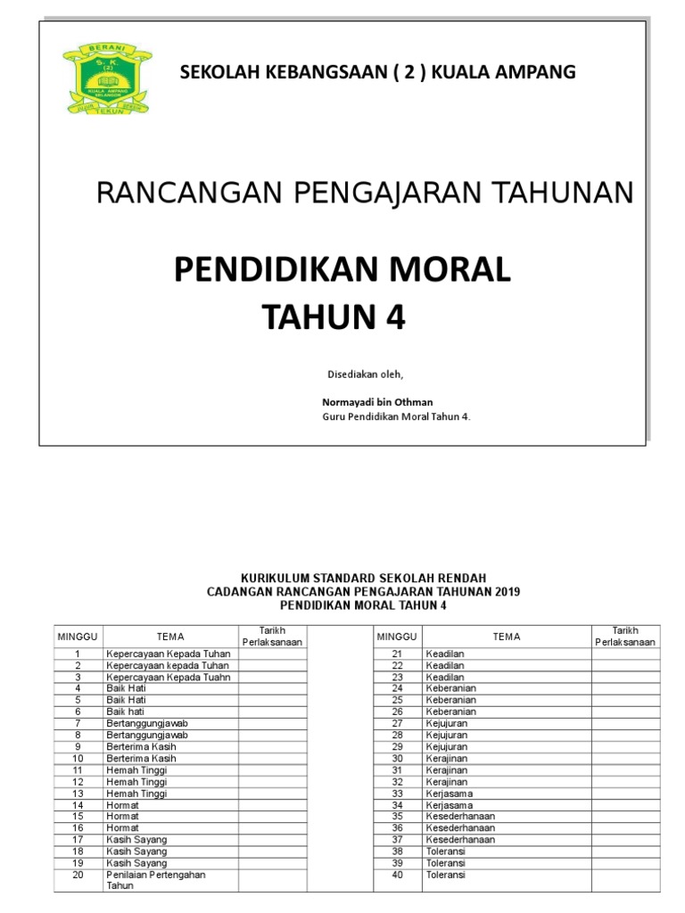 Editable fail dalam microsoft word. Rancangan pengajaran tahunan pendidikan moral sk. Rancangan pengajaran tahunan rpt pendidikan moral boleh di download menerusi pautan di bawah rancangan tahunan pendidikan moral tahun 4 kssr sudah update. Rpt moral tahun 3 kssr.docx. Dapatkan rancangan pengajaran harian pendidikan moral tahun 4 sekolah rendah terbaru hari ini.